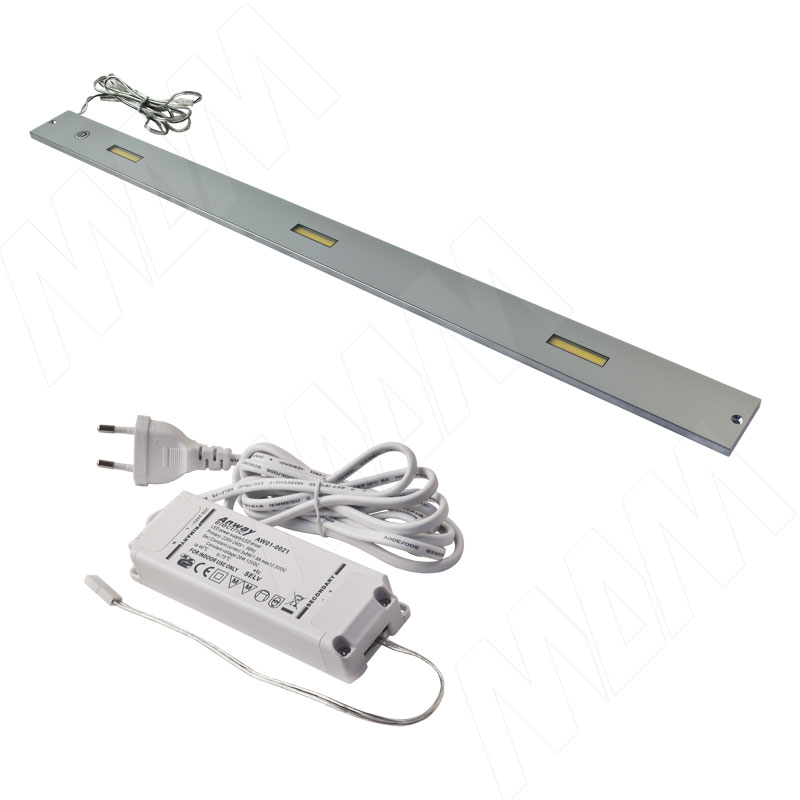 Светильник светодиодный с БП, кнопочный выключатель, 600 мм, алюминий, нейтральный белый 4500K, 3x3W
