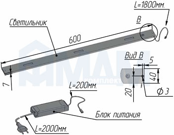 Комплектация: встроенный механический выключатель, блок питания с вилкой, саморезы