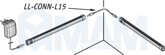 Для подключения светильника к сети необходим бок питания (мощностью 12 Вт (артикул PA12V-IP21-12W) или 24 Вт (артикул PA12V-IP21-24W). С помощью стыковочного коннектора LL-CONN-L15 светильники можно устанавливать последовательно, организуя непрерывную светящуюся линию или реализовать угловые решения.