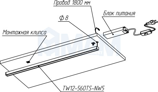 Комплектация: светильник с комплектом монтажных клипс
