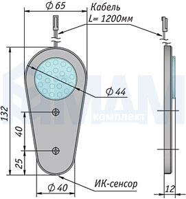 Комплектация: светильник со встроенным ИК-датчиком (на преграду) с коннектором (длина 1,2 м ), набор крепежных элементов