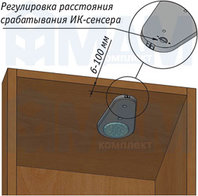 Внимание!В светильнике предусмотрена регулировка чувствительности сенсора, что позволяет располагать светильник ближе или дальше относительно дверцы шкафа.