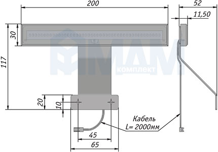 Комплектация: светильник с коннектором (длина 2 м)