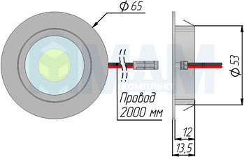 • толщина светильника 12 мм, что дает возможность устанавливать его в плиту толщиной 16 мм без сверления сквозного отверстия;