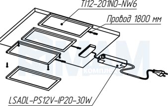 Комплектация: 3 светильника TI12-201NO-NW6, блок питания