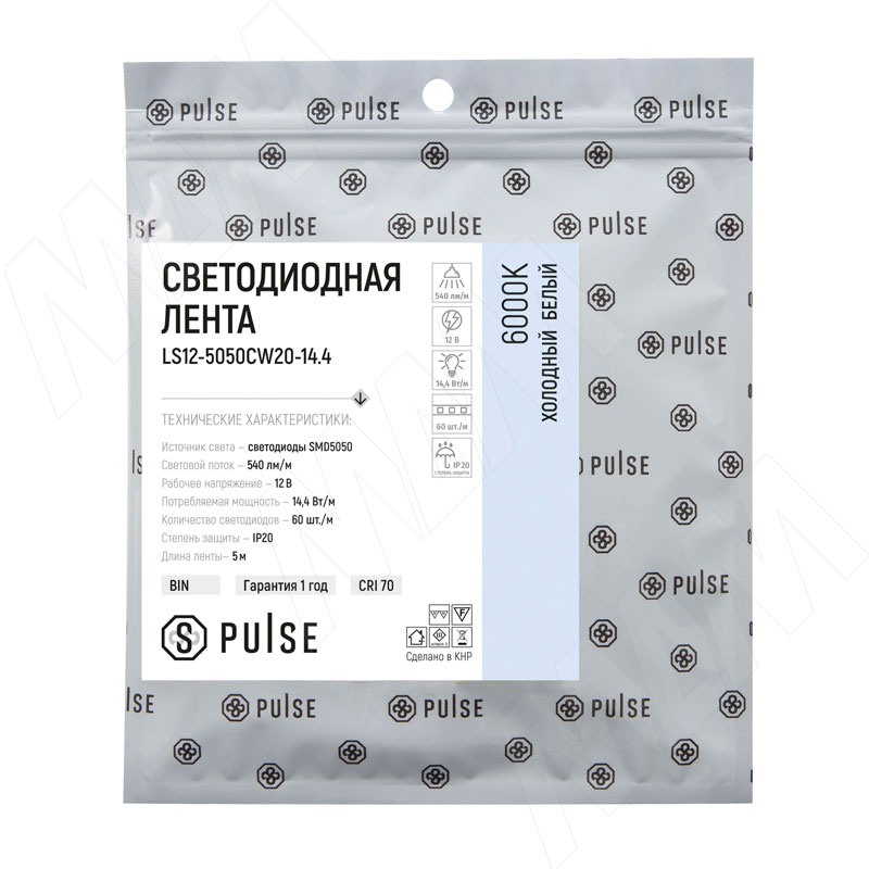 Лента светодиодная 5050/60, 12V, 5 м, холодный белый 6000К, IP20, 14.4W/1м фото товара 1 - LS12-5050CW20-14.4 Изображение товара Лента светодиодная 5050/60, 12V, 5 м, холодный белый 6000К, IP20, 14.4W/1м ракурс 1 - LS12-5050CW20-14.4