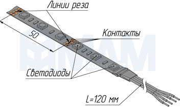 Ленту можно резать, кратность реза равна 50 мм.