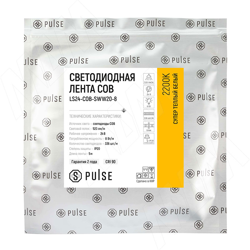 Светодиодная лента с супертёплой температурой свечения Цветовая температура 2200 К новых светодиодных лент LUX COB от PULSE приближена к температуре света горящей свечи.