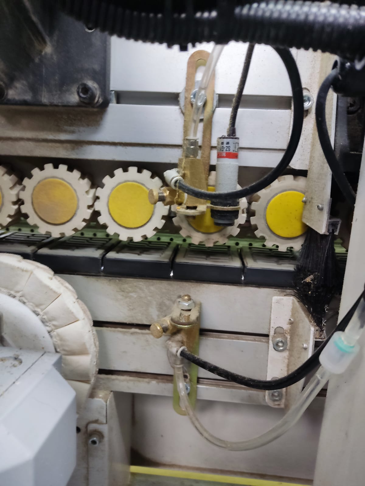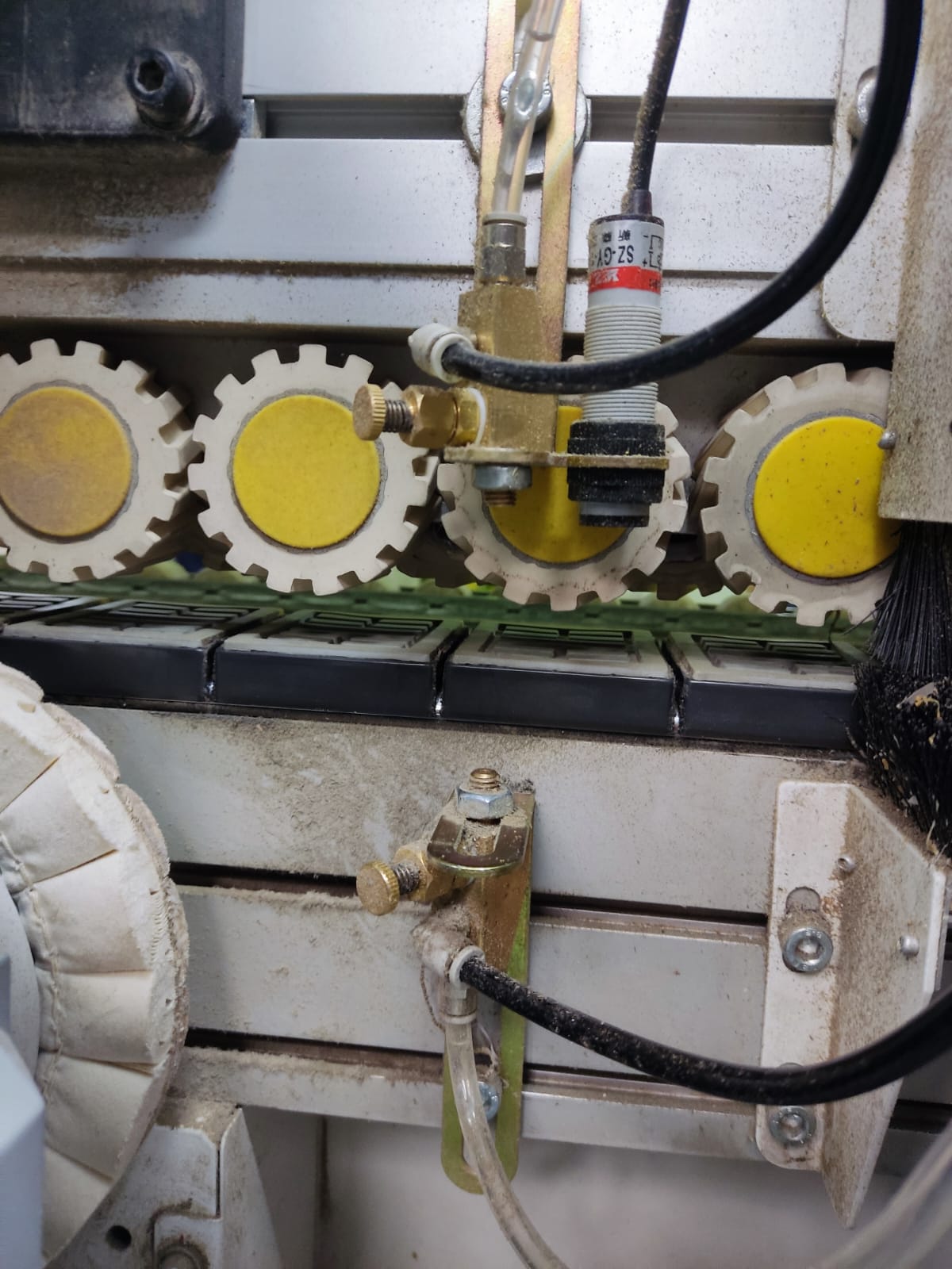 на входе станка, перед фуговальными фрезами, на прижимной ролик, после зоны прижима, перед полировальными кругами/циклями