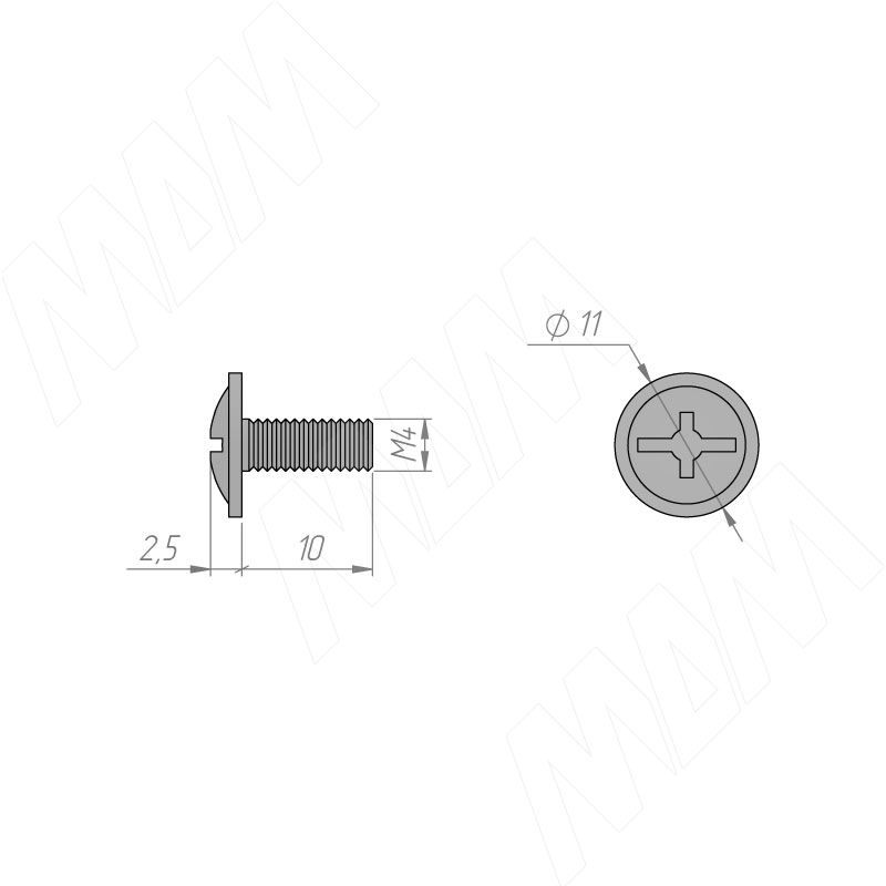Размеры винта M4х10 мм с полукруглой головкой под крест (артикул HS M4 X10)
