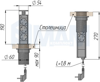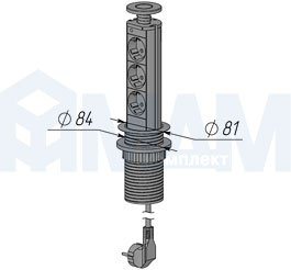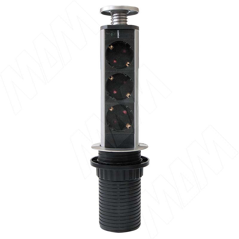 Купить выдвижной блок розеток, d=60 мм, 3 розетки, серебро оптом и в розницу в городе Москва.