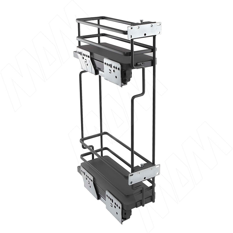GALAXY Двухуровневая корзина в верхн. яр. 150 мм (бутылочница), бок. крепл. лев., направл. плавн. закр. Nova Pro, графит