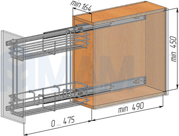 Комплектация: корзина, направляющие, крепления к фасаду без возможности регулировки