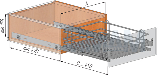 Купить корзина 450 мм б/фасада, с бок. крепл. оптом и в розницу в городе Москва.