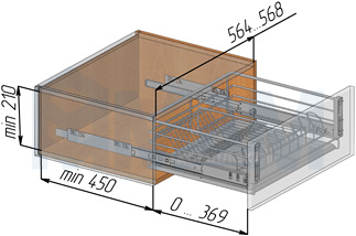 Комплектация: корзина-посудосушитель, направляющие, пластиковый поддон, крепления к фасаду