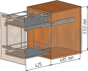 Комплектация: корзина, направляющие, крепления к фасаду, разделители