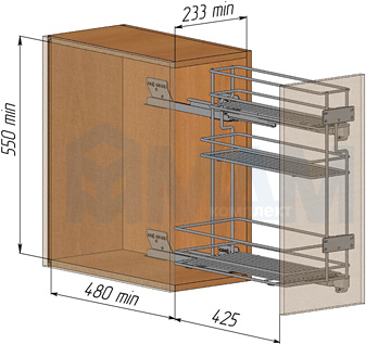 ROUND Корзина под мойку трехуровневая, бокового крепления правая, направляющие Nova Pro