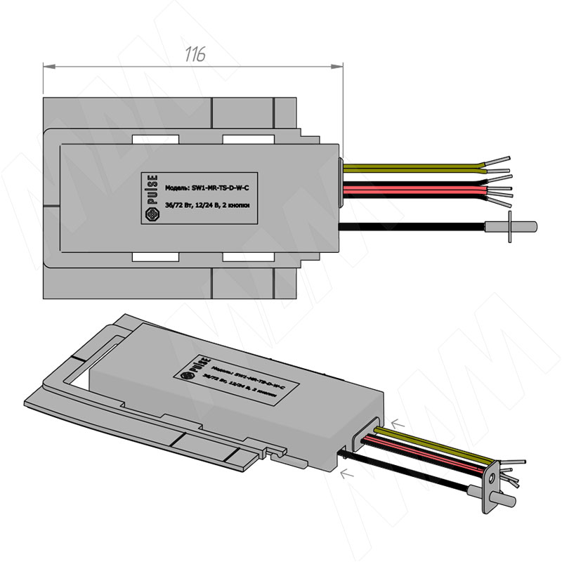 Подготовка к установке монтажной планки сенсорного диммируемого выключателя для зеркала, обогрев, электронные часы, 2 кнопки, 12/24В (артикул SW1-MR-TS-D-W-C)