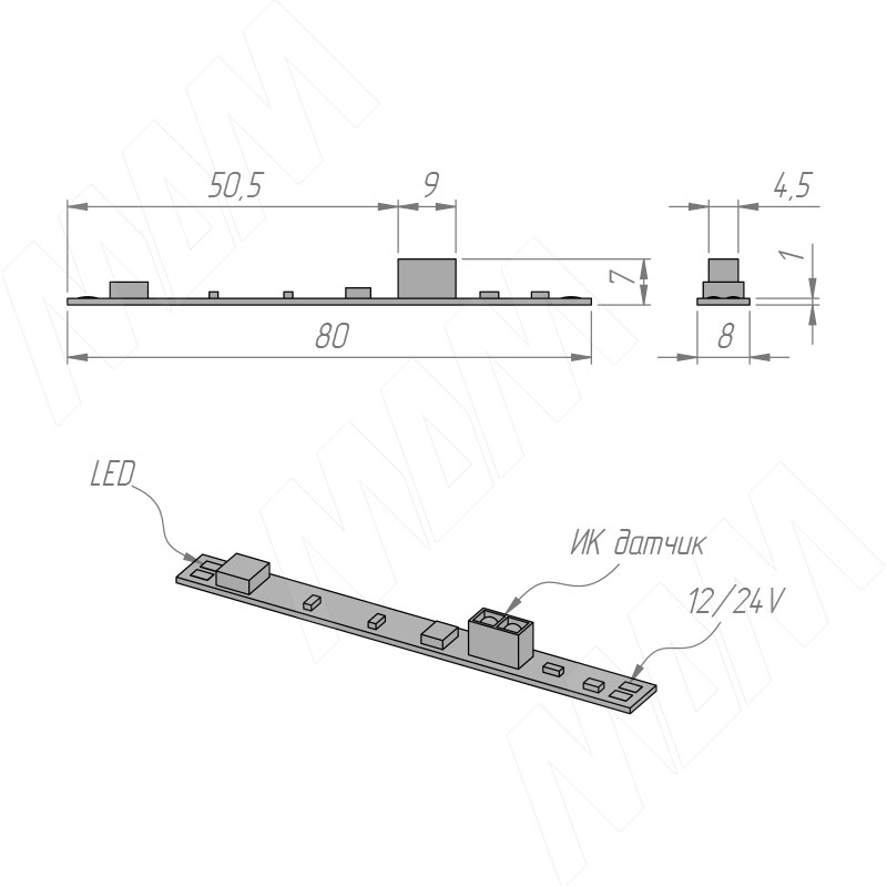 Выключатель на преграду, для установки в профиль, ширина 8 мм, 12/24V, 60/120W