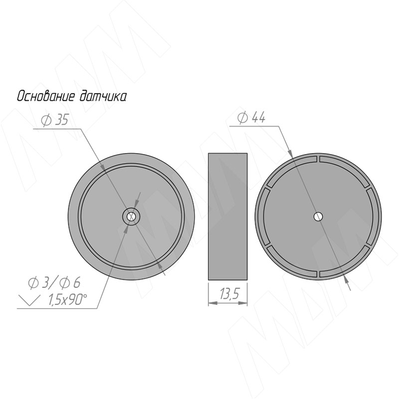 Размеры основания для сенсорного беспроводного диммируемого врезного/накладного датчика (артикул SW1-RC-TS-R)