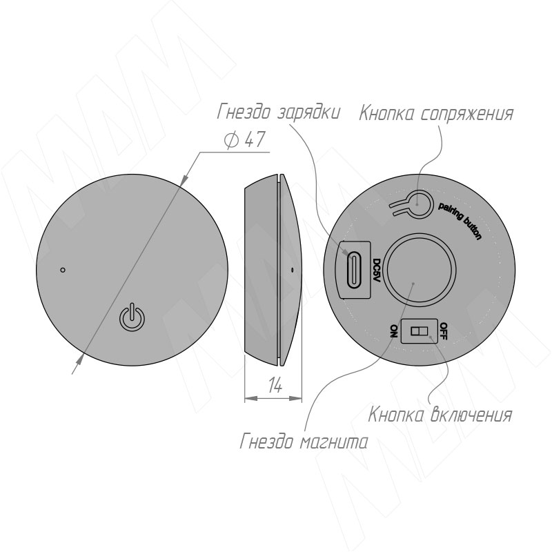 Питание выключателя: встроенный аккумулятор (разъём USB Type-C)