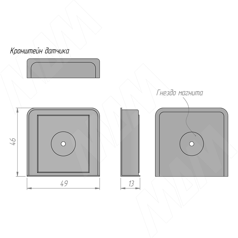 Размеры кронштейна датчика беспроводного диммируемого инфракрасного (IR) выключателя на преграду, 12/24В, 60/120Вт, IP20 (артикул SW1-RC-DS-R-BL)