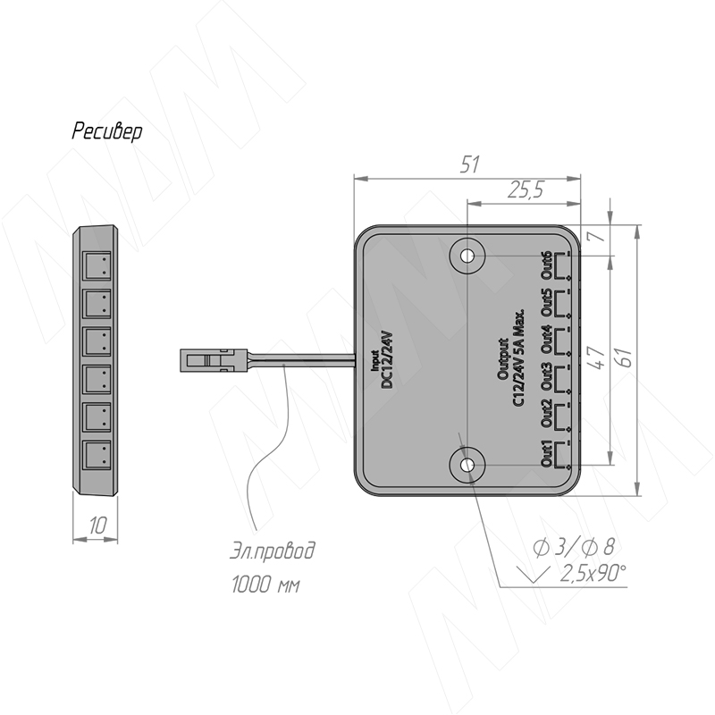 Внимание! Выключатель может работать в напряжении 12 и 24 В, но ресивер и провода оснащены коннекторами для напряжения 12 В. Для подключения светильников и блока питания с рабочим напряжением 24 В необходимо дополнительно приобрести провода-«переходники».