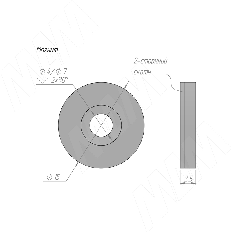Размеры магнита для беспроводного диммируемого инфракрасного (IR) выключателя на преграду, 12/24В, 60/120Вт, IP20 (артикул SW1-RC-DS-R-BL)