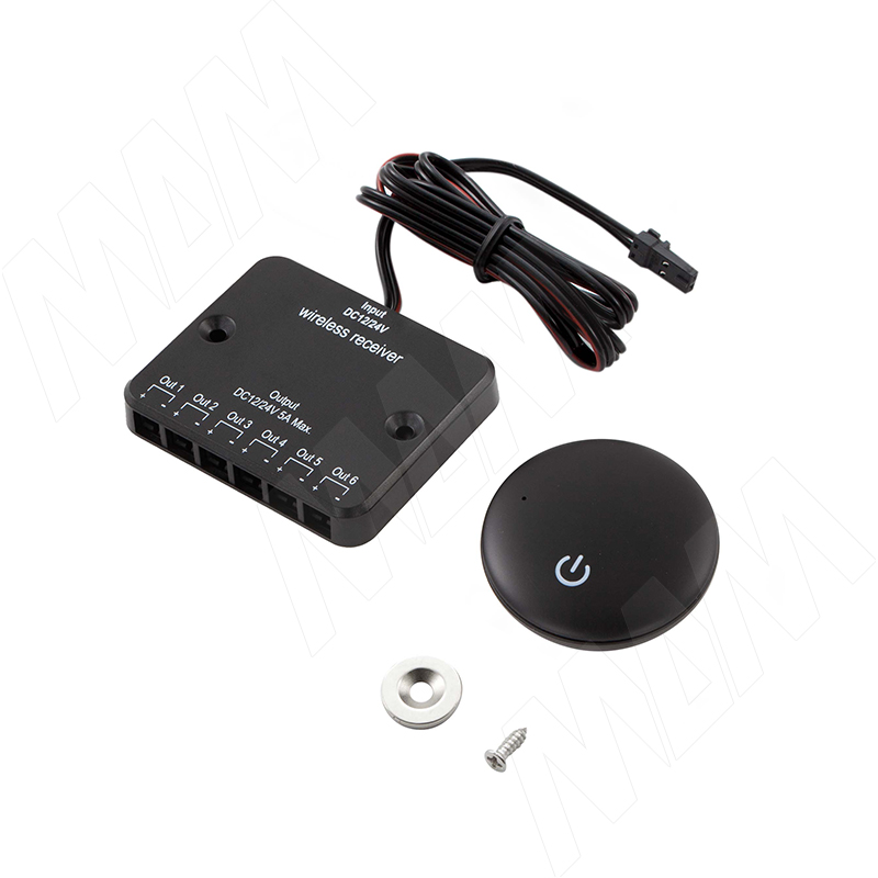 Выключатель кнопочный беспроводной, диммируемый, 12/24В, 60/120Вт, IP20, цвет черный, с крепежом