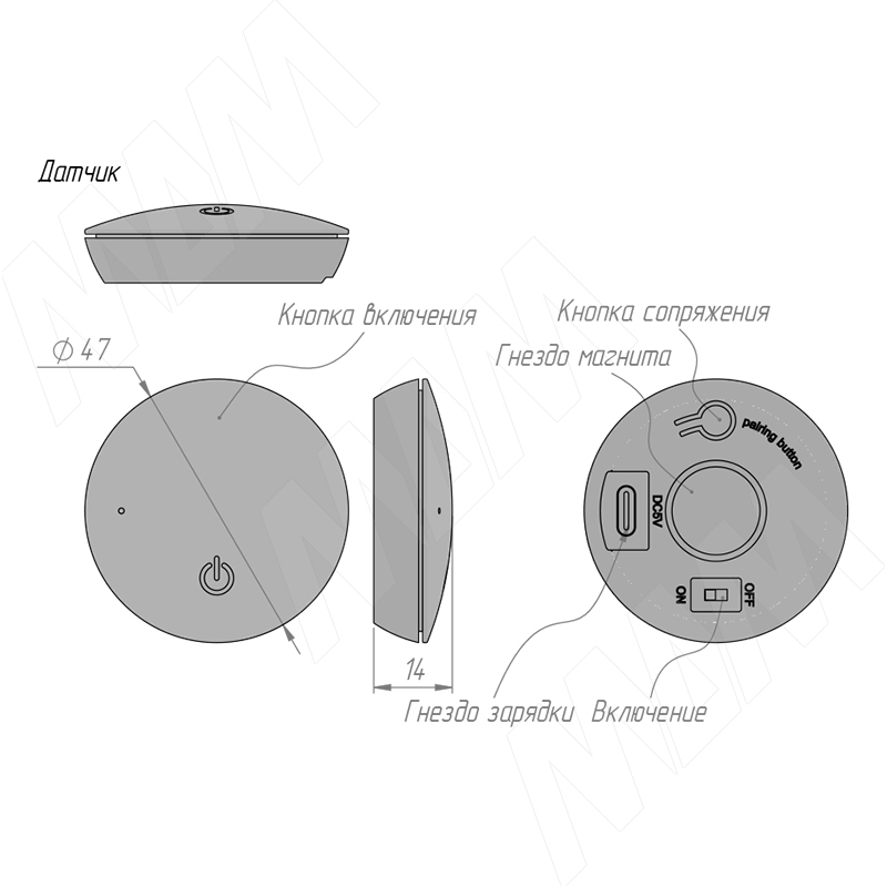 Питание выключателя: встроенный аккумулятор (разъём USB Type-C)