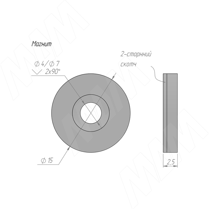 Размеры магнита для беспроводного кнопочного выключателя, 12/24В, 60/120Вт, IP20 (артикул SW1-RC-PB-R-BL)