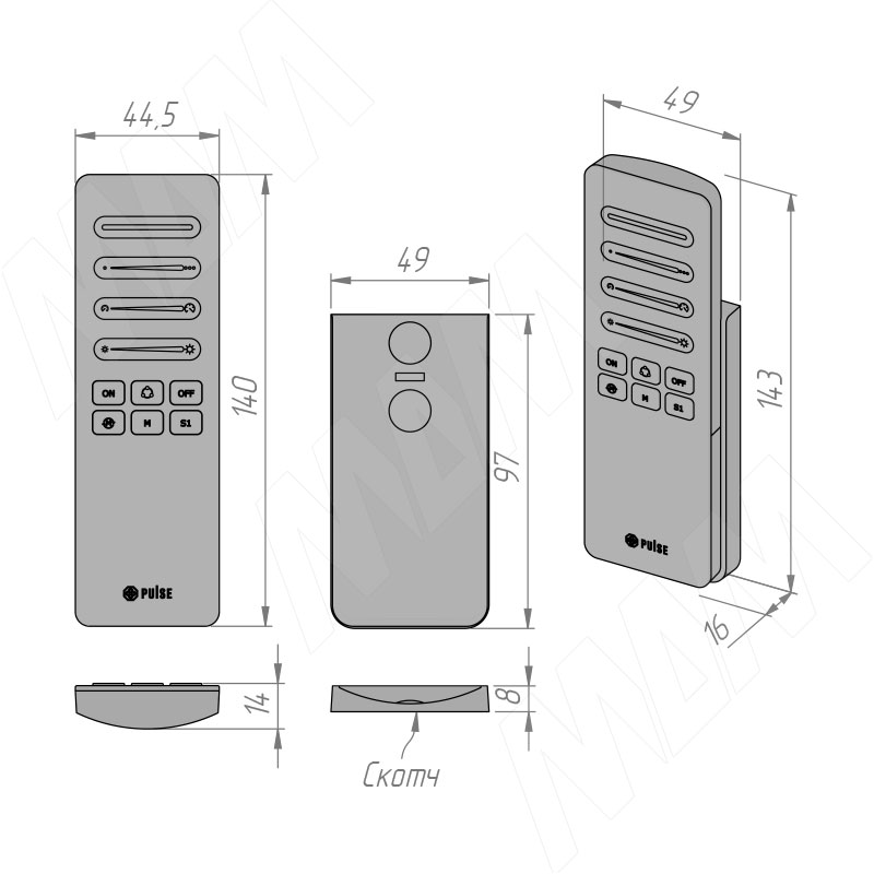 Размеры пульта дистанционного управления контроллером SMART для светодиодных лент SPI, сенсорный, магнитное крепление, 2.4 ГГц (артикул RE-SPI-S-RGBW-R-BL)