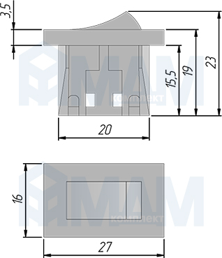 Купить выключатель прямоугольный, врезной, клавишный, 27х16 мм, белый оптом и в розницу в городе Москва.