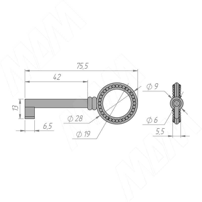 Размеры ключа (артикул WCH.7020/42)