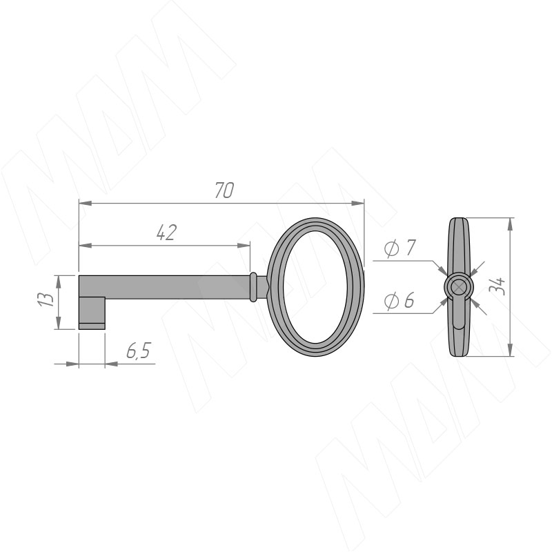 Размеры ключа (артикул WCH.7007/42)