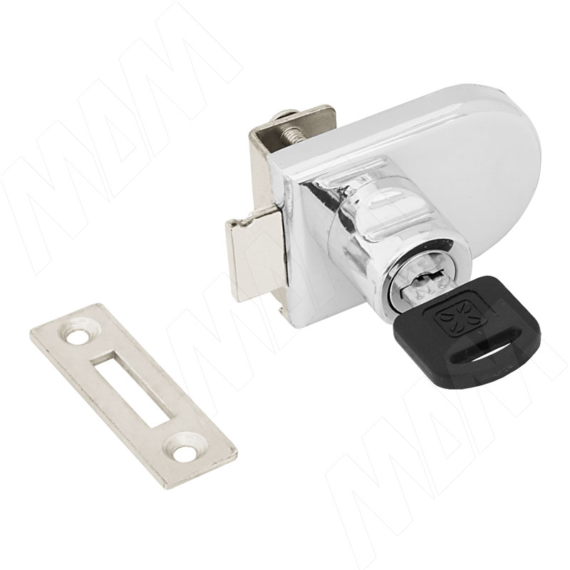 Замок-ручка для 1-ой двери, без сверления, выдвижной + отв. планка, хром