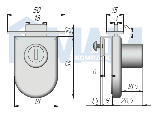 Купить замок-ручка для 1-ой двери, без сверления, выдвижной + отв. планка, хром оптом и в розницу в городе Москва.