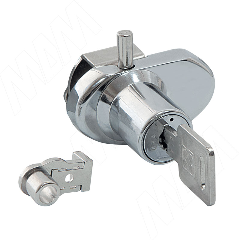 Замок-ручка для 2-х дверей, без сверления, выдвижной + отв. планка, хром