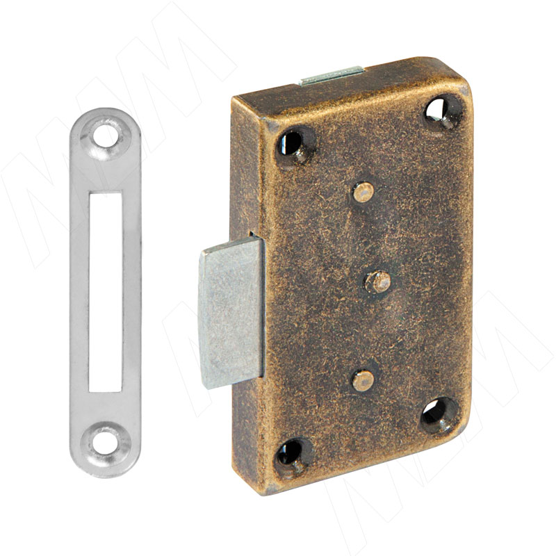 Купить замок мебельный, выдвижной + отв. планка, бронза состаренная оптом и в розницу в городе Москва.