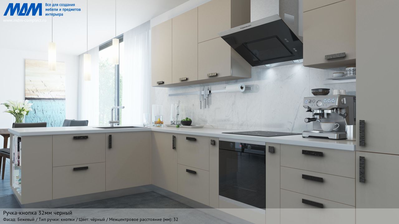 Характеристики ручки: Тип ручки: кнопки / Вставка: без вставки / Цвет: чёрный / Межцентровое расстояние (мм): 32