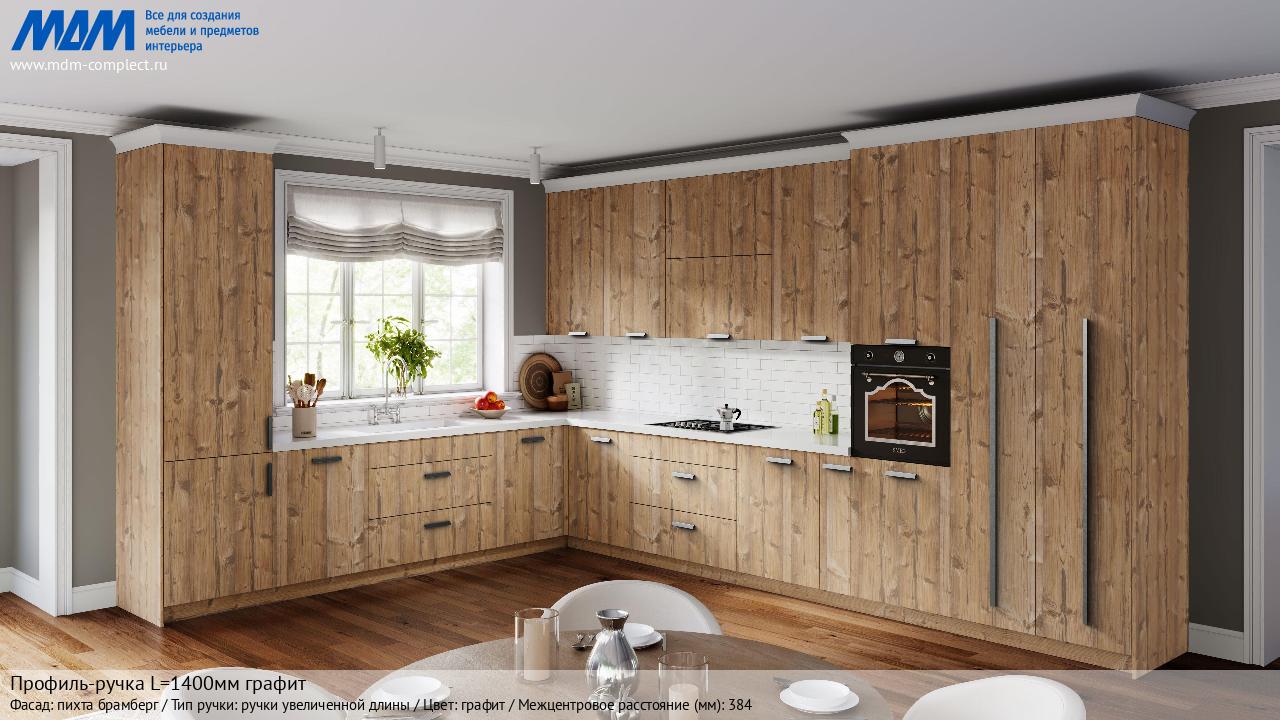 Мебельная Профиль-ручка L=1400мм графит на различных фасадах в кухонном интерьере в стиле классика, лофт, модерн.
