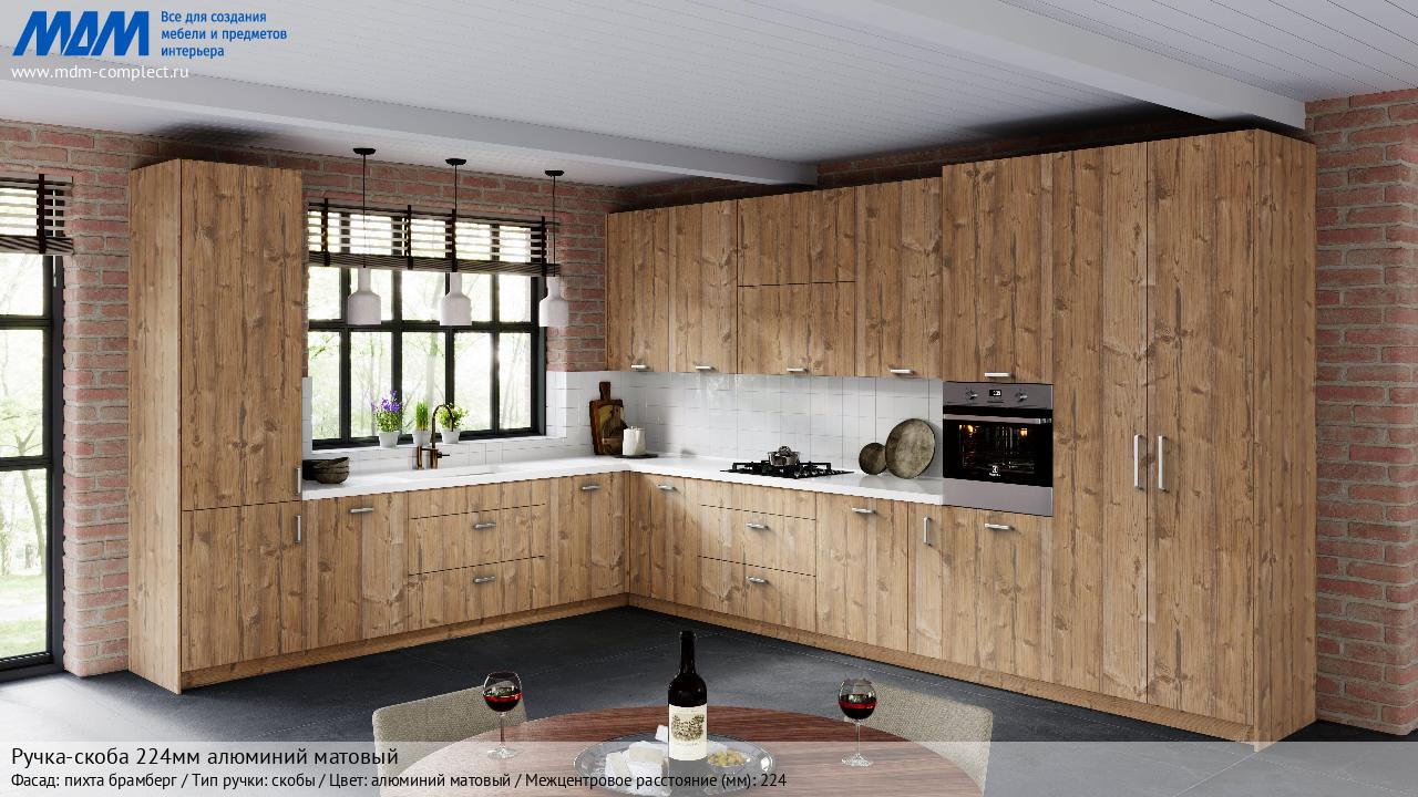 Мебельная Ручка-скоба 224мм алюминий матовый на различных фасадах в кухонном интерьере в стиле классика, лофт, модерн.