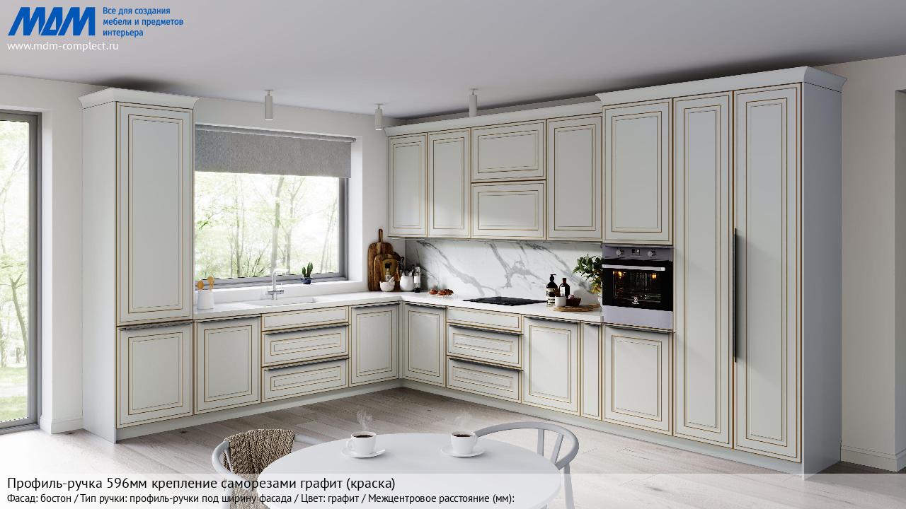 Мебельная Профиль-ручка L=596мм крепление саморезами графит (краска) на различных фасадах в кухонном интерьере в стиле классика, лофт, модерн.