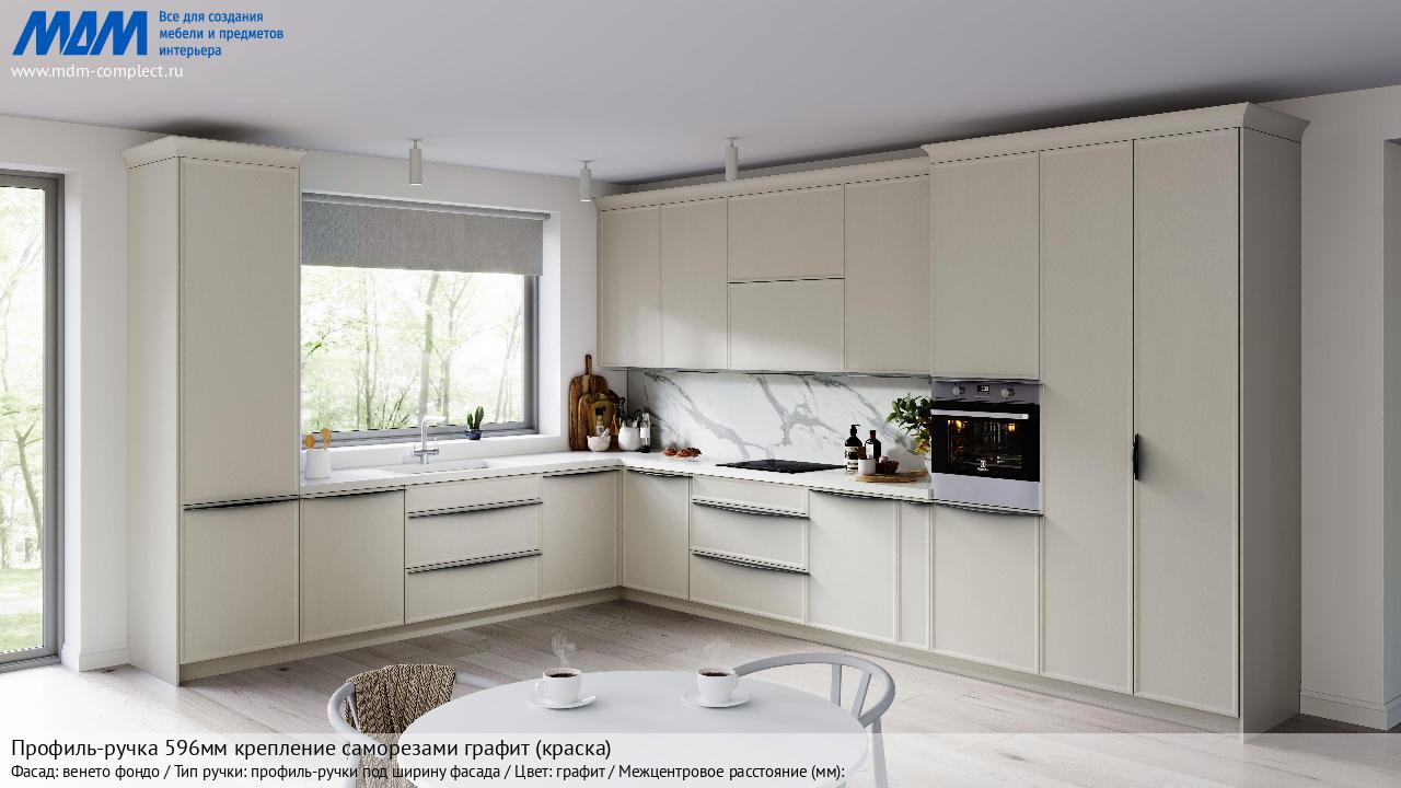Мебельная Профиль-ручка L=596мм крепление саморезами графит (краска) на различных фасадах в кухонном интерьере в стиле классика, лофт, модерн.