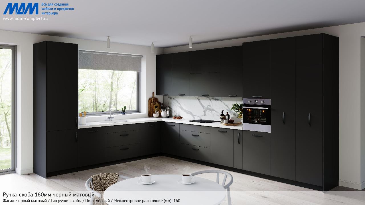 Ручка-скоба 160мм черный матовый (BH.12.160.BLM) в готовой кухне на различных фасадах