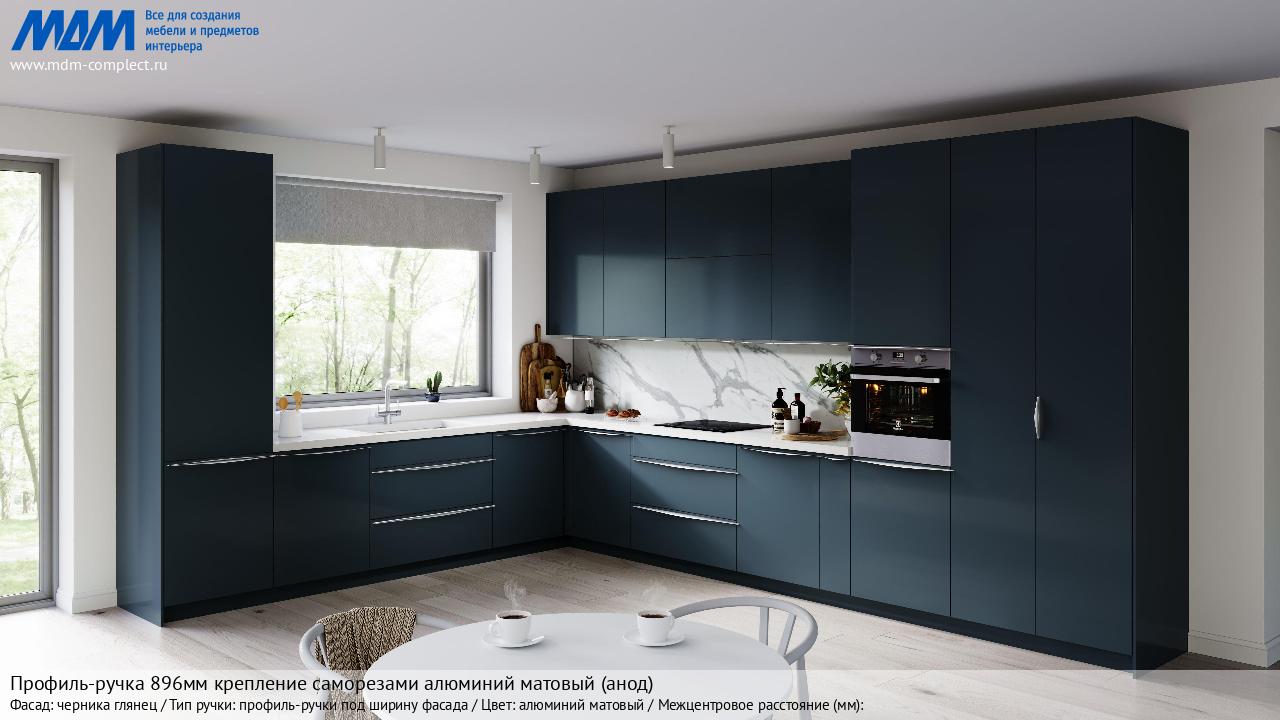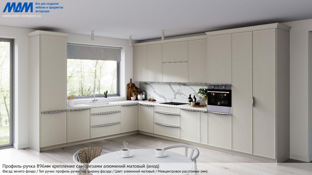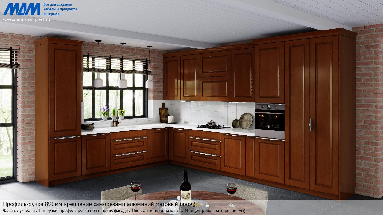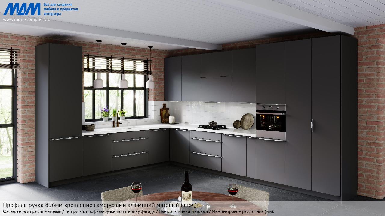Мебельная Профиль-ручка L=896мм крепление саморезами алюминий матовый (краска) на различных фасадах в кухонном интерьере в стиле классика, лофт, модерн.