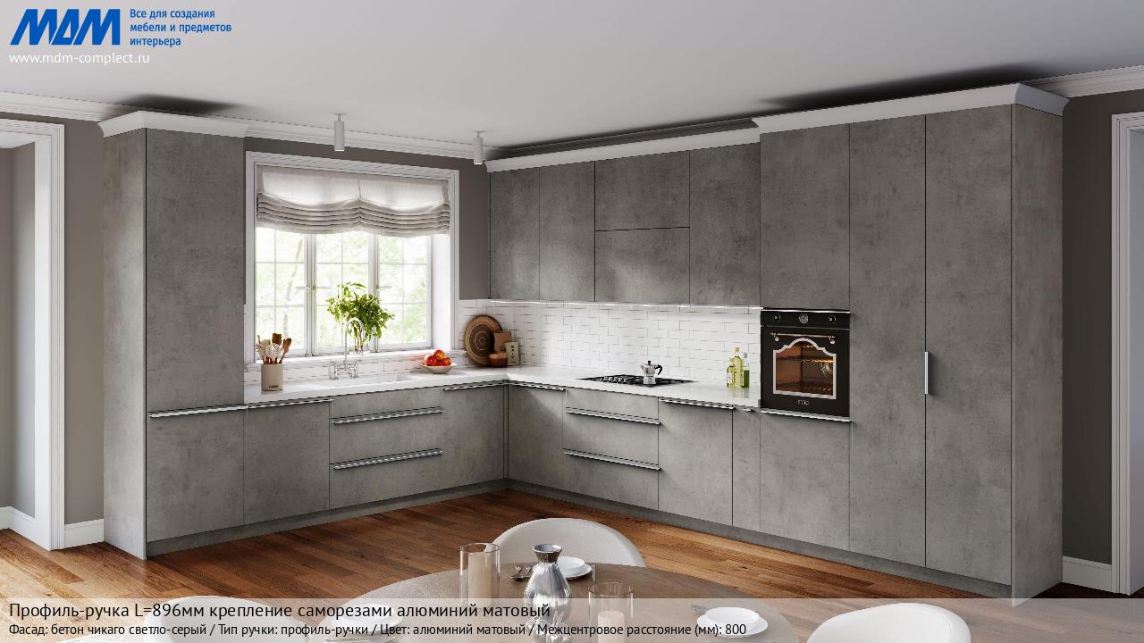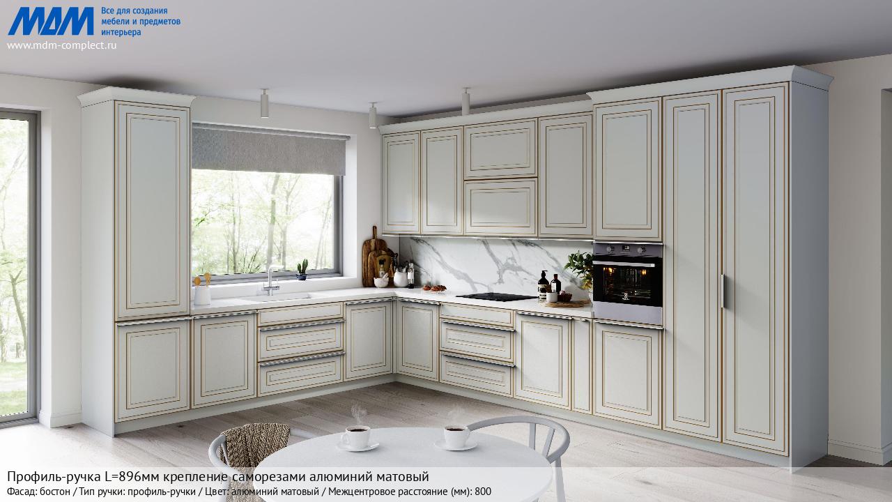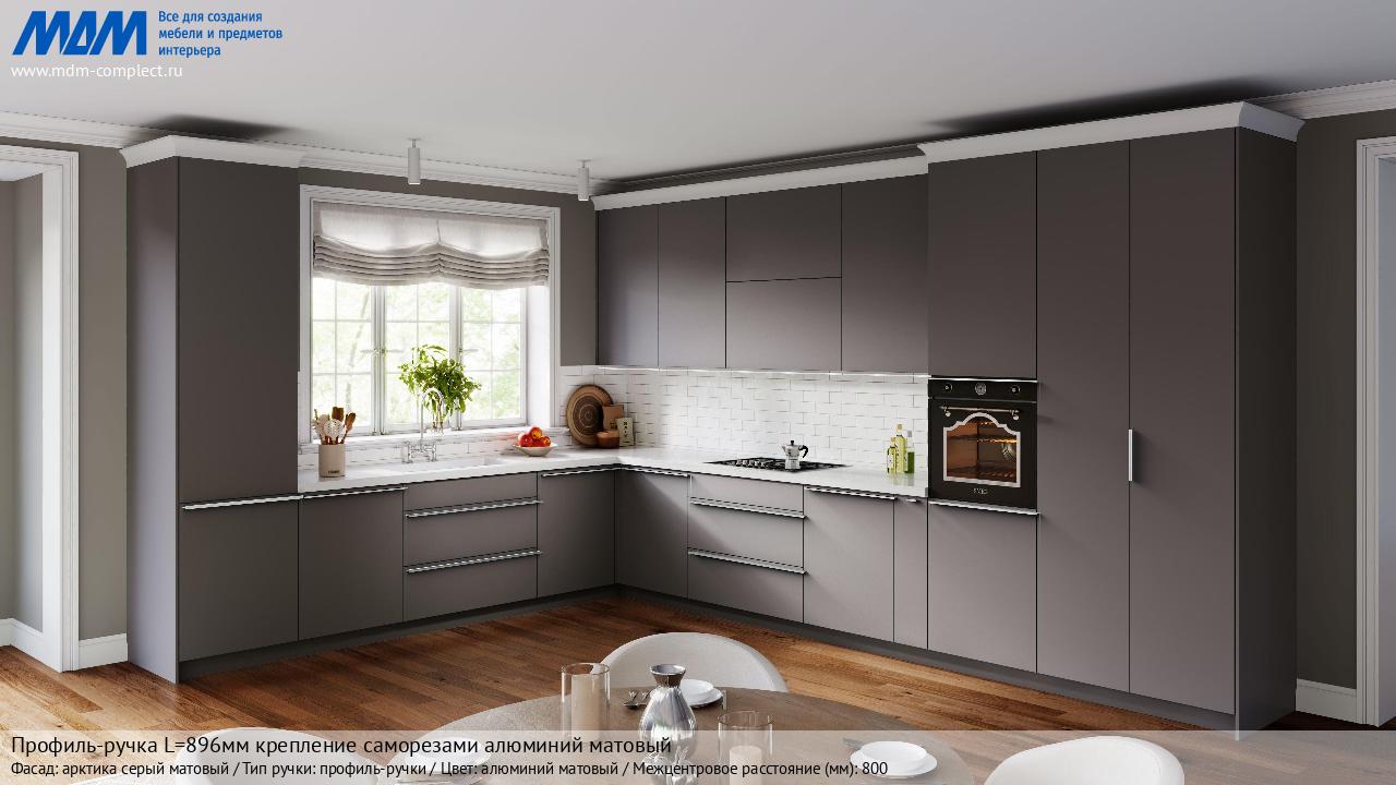 Мебельная Профиль-ручка L=896мм крепление саморезами алюминий матовый (анод) на различных фасадах в кухонном интерьере в стиле классика, лофт, модерн.