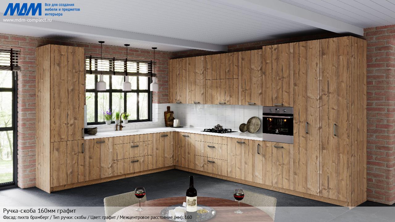 Ручка-скоба 160мм графит (BH.26.160.GF) в готовой кухне на различных фасадах