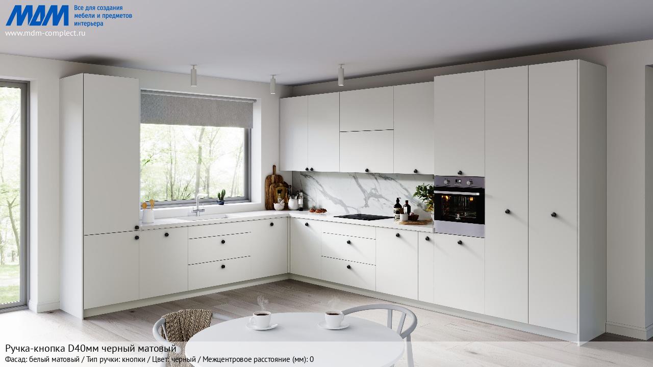 Мебельная Ручка-кнопка D40мм черный матовый на различных фасадах в кухонном интерьере в стиле классика, лофт, модерн.