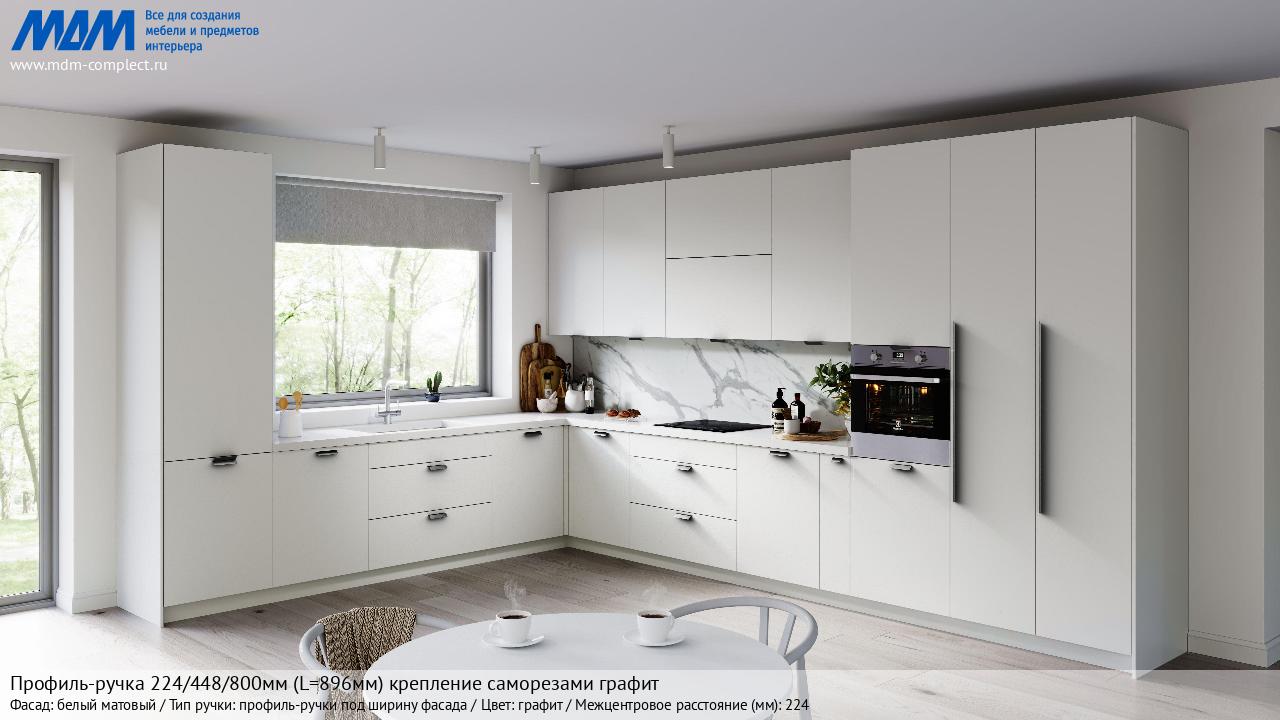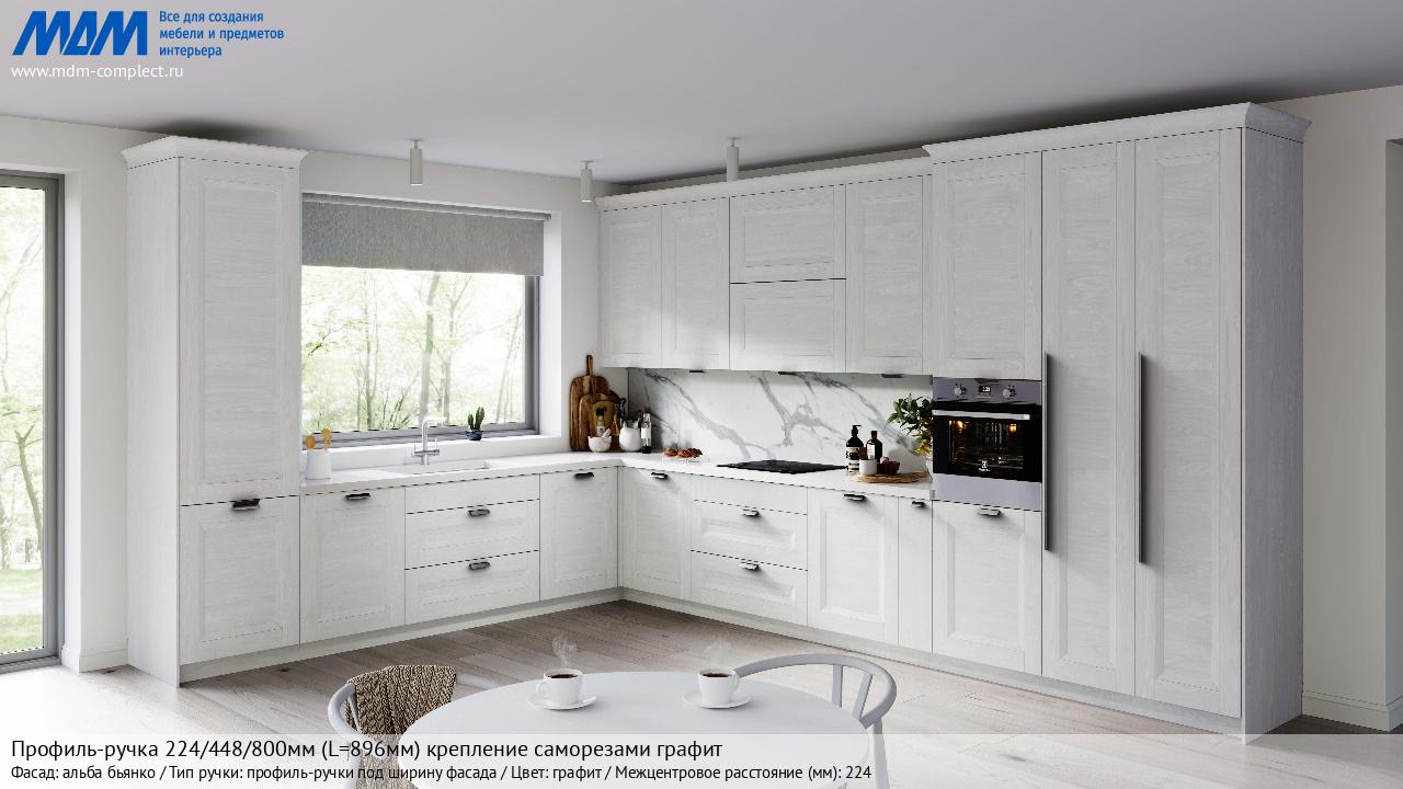 Мебельная Профиль-ручка 224/448/800мм (L=896мм) крепление саморезами графит на различных фасадах в кухонном интерьере в стиле классика, лофт, модерн.